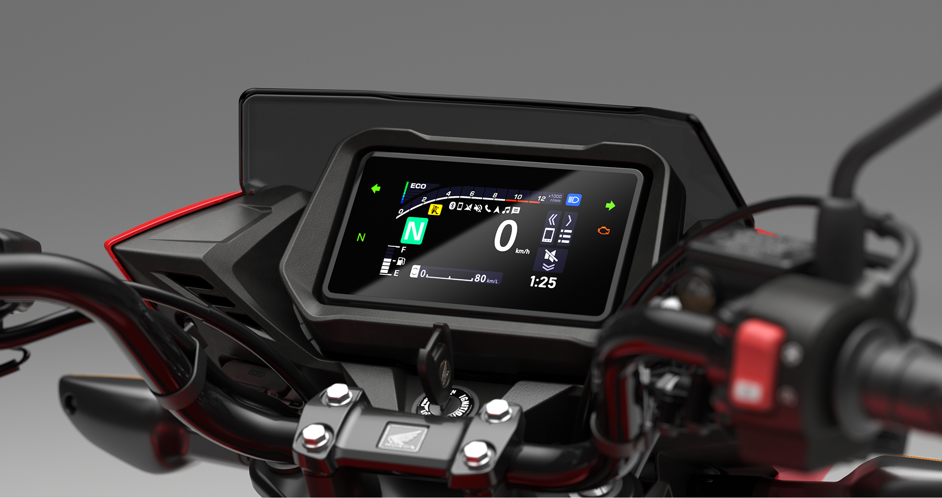 Refinada de baixo para cima, a CB125F desfruta de atualizações na carenagem dianteira e traseira, bem como de novos faróis LED no conjunto, oferecendo uma estética mais moderna. Foi adicionado um novo ecrã TFT de 4,2 polegadas, com conectividade Bluetooth® , para que possa utilizar o Honda RoadSync e manter-se atualizado e conectado enquanto está em movimento.