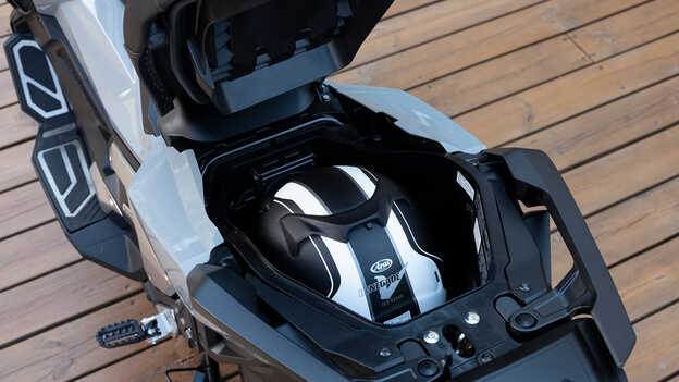 A liderar o caminho, uma nova carenagem dianteira elegante exala um estilo SUV premium, enquanto os faróis duplos com projetor LED lançam feixes largos para a frente. Os indicadores estão agora incorporados nas luzes de circulação diurna (DRL), produzindo um aspeto limpo e altamente visível, melhorando significativamente a visibilidade e a segurança para os peões e outros utentes da estrada. No entanto, no caso da X-ADV, a função é tão importante como a forma; as funcionalidades práticas da scooter, como, por exemplo, a arrumação debaixo do assento (com uma forte luz interior e uma conveniente divisão interna do compartimento), o porta-luvas de fácil acesso à frente, o piso plano e o para-brisas ajustável em 5 níveis, tornam a vida em movimento um prazer diário.