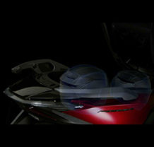 O chassis oferece grande agilidade para vencer o trânsito da cidade e permite à Forza 125 ter um desempenho excelente nas vias rápidas, também graças aos novos pneus Michelin™ e ao sistema de antibloqueio em travagem ABS da Honda que oferece um nível extra de confiança. Estas caraterísticas juntam-se ao perfil esguio e dinâmico, com farol dianteiro e farolim traseiro de LEDs e a uma série de outras caraterísticas inteligentes de design – por exemplo, ao para-brisas de regulação elétrica contínua. Adicionalmente, o espaço de baixo do banco tem capacidade para dois capacetes integrais. Este espaço de arrumação pode ainda ser dividido entre um capacete integral e/ou um fato de chuva e pastas de tamanho A4. Como opção, está disponível uma top case de 45 litros e.