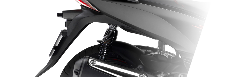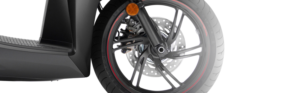A SH300i está apoiada nas amplas rodas traseira e dianteira de 16”, equipadas com o sistema de travagem antibloqueio (ABS). Em conjunto, proporcionam uma estabilidade máxima para condução na cidade e em autoestrada.