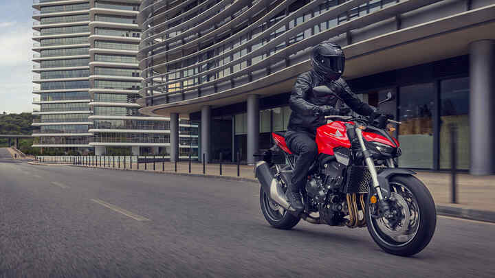 A competição de alta performance está no ADN da CB1000 Hornet. O seu motor de quatro cilindros DOHC de 999 cm3 debita uma potência carregada de adrenalina de 112 kW às 11.000 rpm e um binário de 104 Nm às 9000 rpm. Afinada para um débito gradual mas potente nos regimes baixos e médios e um controlo preciso do acelerador, com uma taxa de compressão de 11,7 e otimizados pistões em alumínio fundido recém-desenvolvidos, conduzir esta moto é extremamente entusiasmante, com o seu estilo streetfighter e livre na cidade. E as relações da caixa de velocidades - afinadas para uma aceleração instantânea - garantem que a CB1000 Hornet supera com distinção qualquer conjunto de curvas.