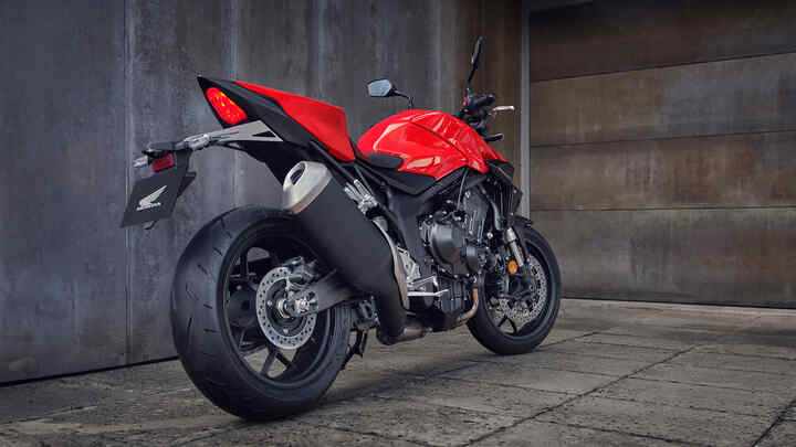 Nada está presente apenas para ostentar. Esta é a moto na sua forma mais crua, definida com precisão. Desenvolvida para a ação, o estilo streetfighter sem cedências da CB1000 Hornet é liderado pelo olhar penetrante dos faróis de duplo projetor LED extremamente compactos, bem integrados numa discreta carenagem dianteira. O quadro subtilmente escurecido confere um forte elemento de design leve, sustentando as linhas, tal como o subquadro traseiro em estilo treliça. O motor, as rodas e o braço oscilante também dispõem de um acabamento em preto, acrescentando um toque ameaçante. E o depósito de combustível de ombros largos, caraterístico do Hornet, que se afunila radicalmente para a traseira, é sinónimo de desempenho puro.