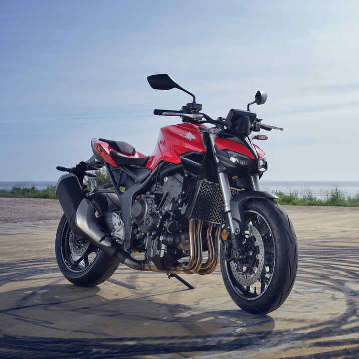 A nossa família Hornet está completa, e a líder da colmeia está aqui com um ferrão na cauda. A nova CB1000 Hornet está equipada com um motor de quatro cilindros construído para devorar o asfalto com uma potência líder no segmento "naked". O Throttle By Wire proporciona um controlo preciso, enquanto o chassis é equipado com forquilhas Showa SFF-BP USD de 41 mm ajustáveis e amortecedor traseiro Pro-Link. A pura agressividade minimalista de street fighting começa por estar patente nos nítidos projetores LED duplos; um ecrã TFT a cores de 5 polegadas e a conetividade Honda RoadSync adicionam a tecnologia avançada. Pronto para o ataque total?