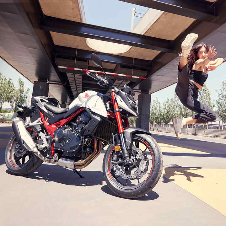 O Throttle By Wire (TBW) oferece três modos de condução predefinidos - Sport, Standard e Rain - mais um modo de Utilizador para afinar o Controlo de Binário Selecionável Honda (HSTC), o Controlo de Wheelie, a Potência do Motor e a Travagem do Motor. A E-Clutch da Honda funciona na perfeição com estes modos para uma mudança de velocidade suave e sem esforço. Tudo é gerido através do visor TFT a cores de 5 polegadas com interface intuitiva e conetividade Honda RoadSync. A iluminação LED duplica o brilho para uma melhor visibilidade, enquanto o cancelamento automático dos indicadores mantém o foco na condução.